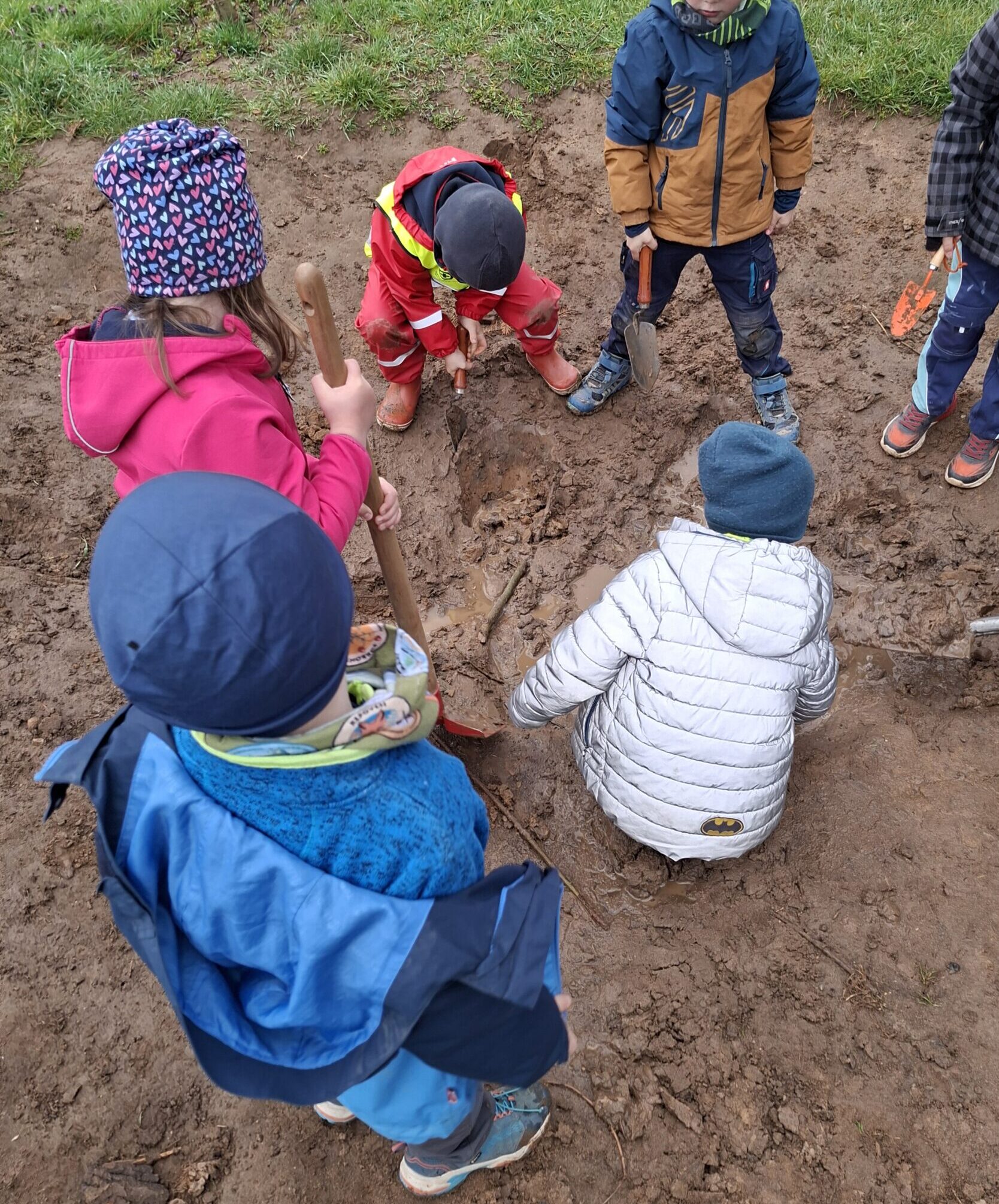 Um sich vor dem Schulstart im September schon mal ein bisschen näher kennenzulernen gab es auch in diesem Jahr wieder ein Kooperationstreffen mit allen zukünftigen Erstklässlern. Dafür haben sich alle Kinder der vier Einrichtungen in Niedernberg zu einem gemeinsamen Treffen verabredet. Durch gemeinsames Spielen im Wald bei den „Wühlmäusen“ sowie im Natur- und Bauernhofkindergarten konnten schon die ersten Freundschaften und Sympathien gefunden werden. Weitere Treffen in unserem Haus sowie im Kindergarten St. Cyriakus sind schon geplant und wir freuen uns über viele neue Eindrücke und Vertiefungen von schon entstandenen Freundschaften.